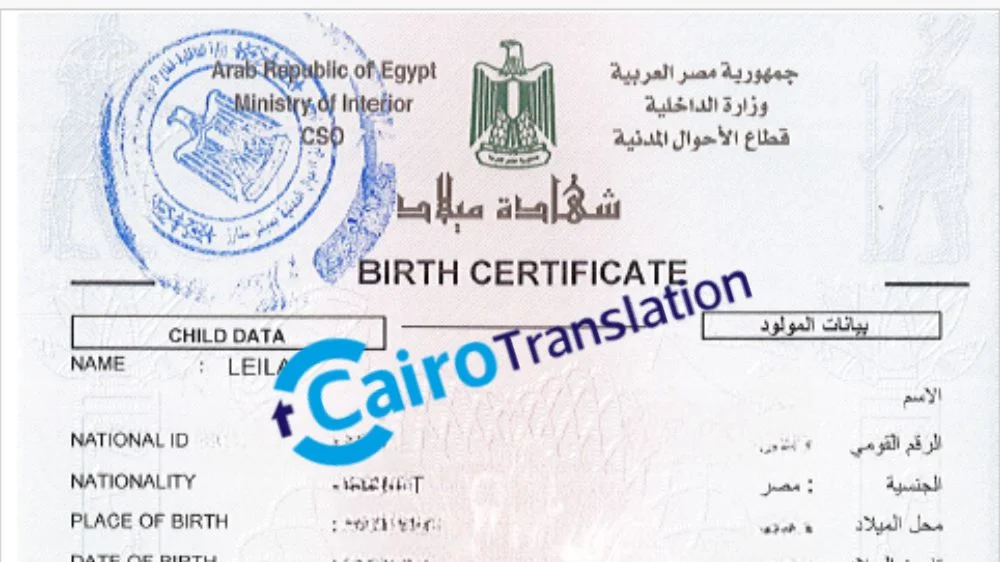 فريق عمل كايرو ترانسليشن مكتب ترجمة شهادة ميلاد معتمدة في مصر